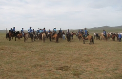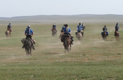 Getest onder zware omstandigheden: in 2009 reden 26 ruiters op Barefoot-zadels door Mongoliƫ. Meer dan 700 paarden deden mee aan de reis van 1000 kilometer. We kunnen met enige trots melden dat ALLE met onze zadels gereden paarden hun deel van de rit (20-40km per paard) zonder problemen volbracht hebben. De paarden liepen door stoffige woestijnen en stromende regen en werden allemaal gecontroleerd door ervaren veterinairen. Alle ruiters spraken hun waardering uit over het comfort, de veelzijdigheid en duurzaamheid van de zadels en zijn van mening dat dit type zadel het meest geschikt is voor een dergelijke rit! | ![]() |